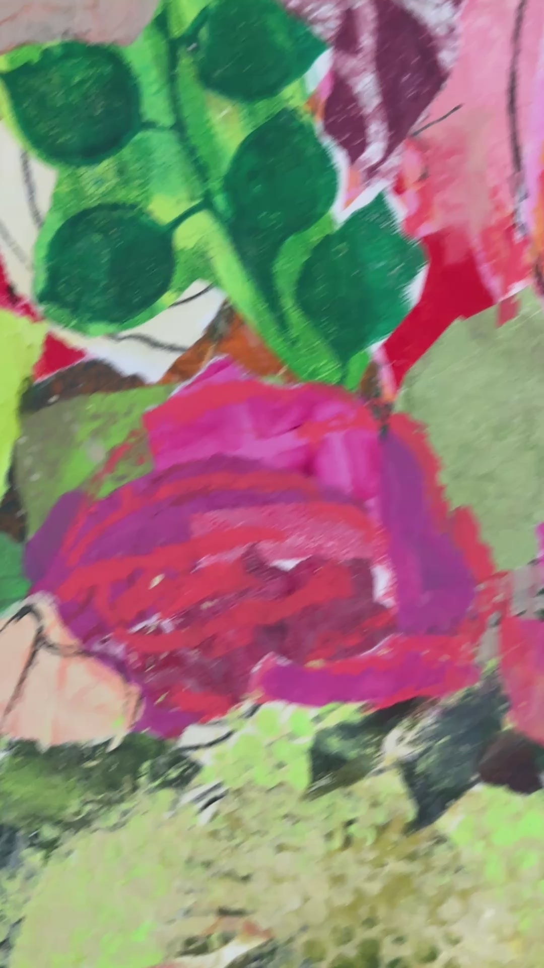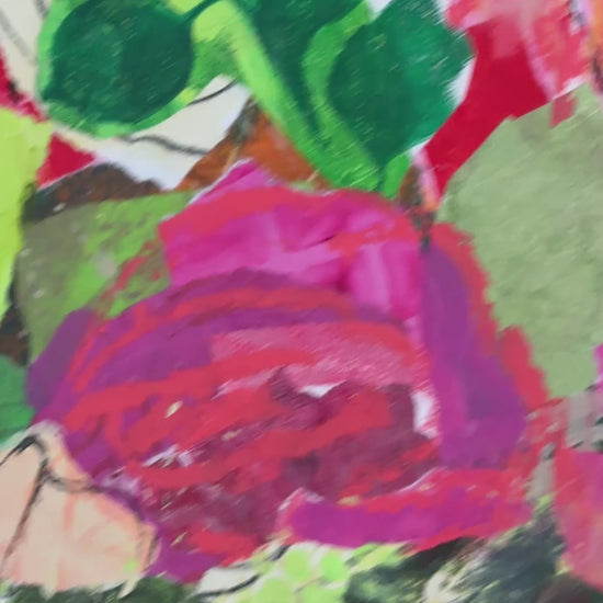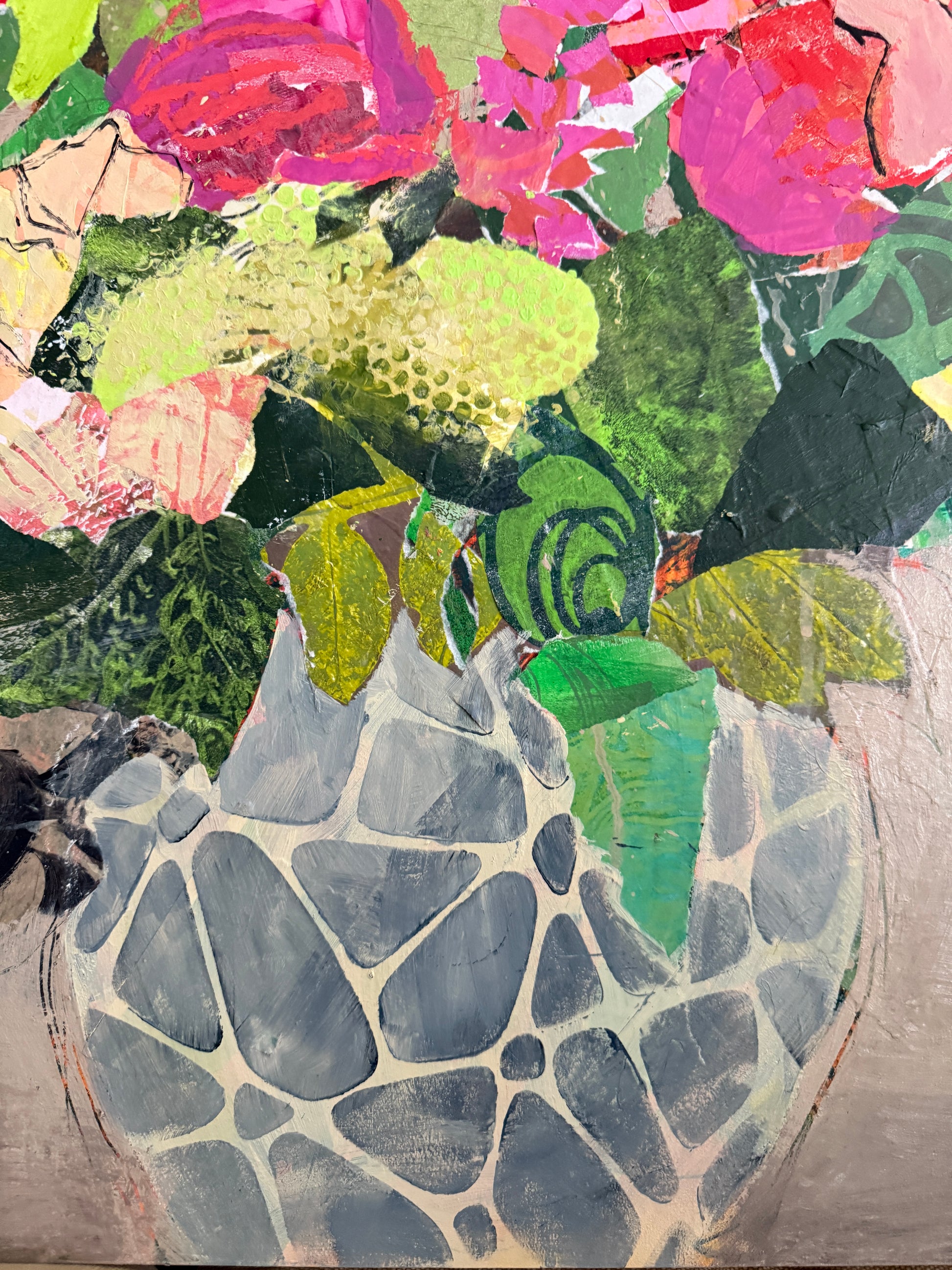 This piece was inspired by the Mother's Day bouqet my husband gave me in 2023. Every petal and leaf includes bits of hand-painted paper, giving the flowers their signature depth and dimension.