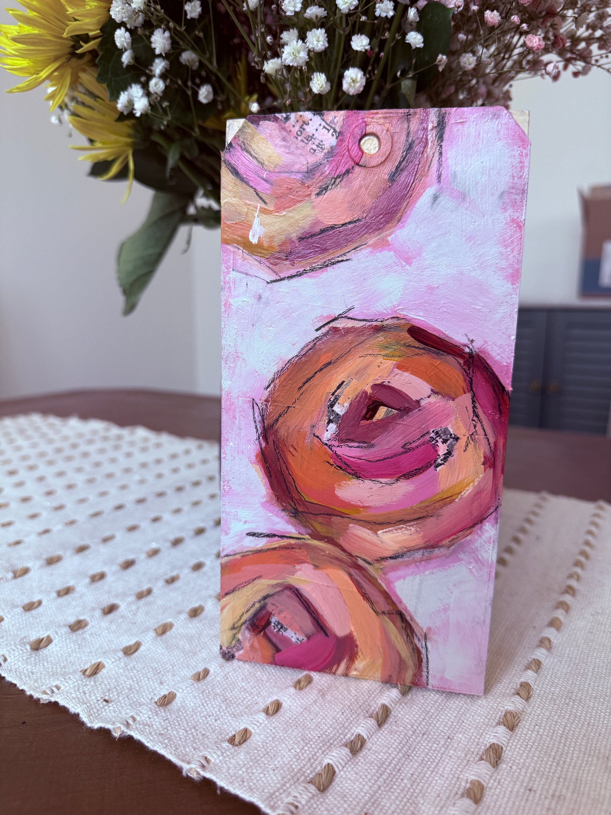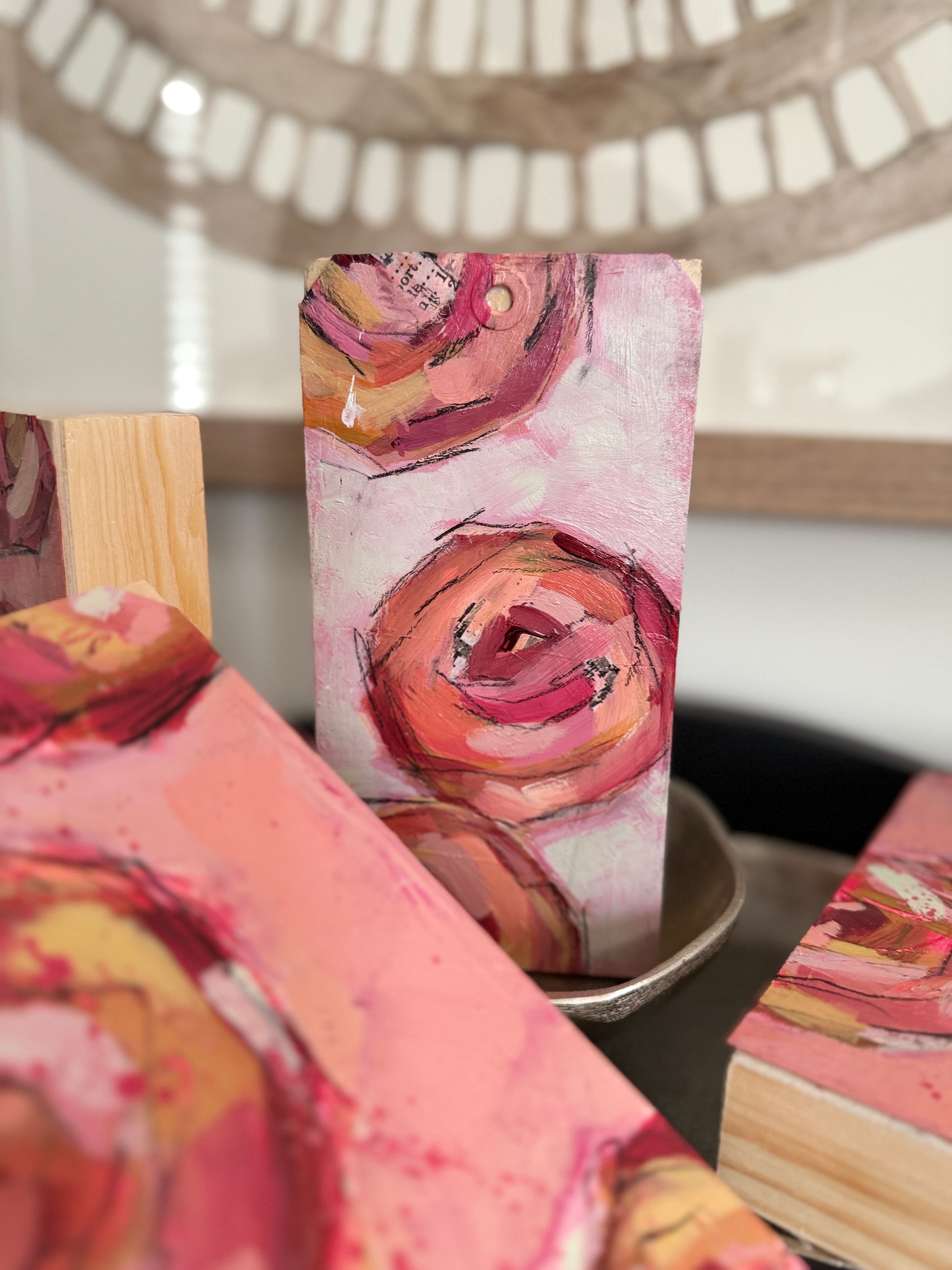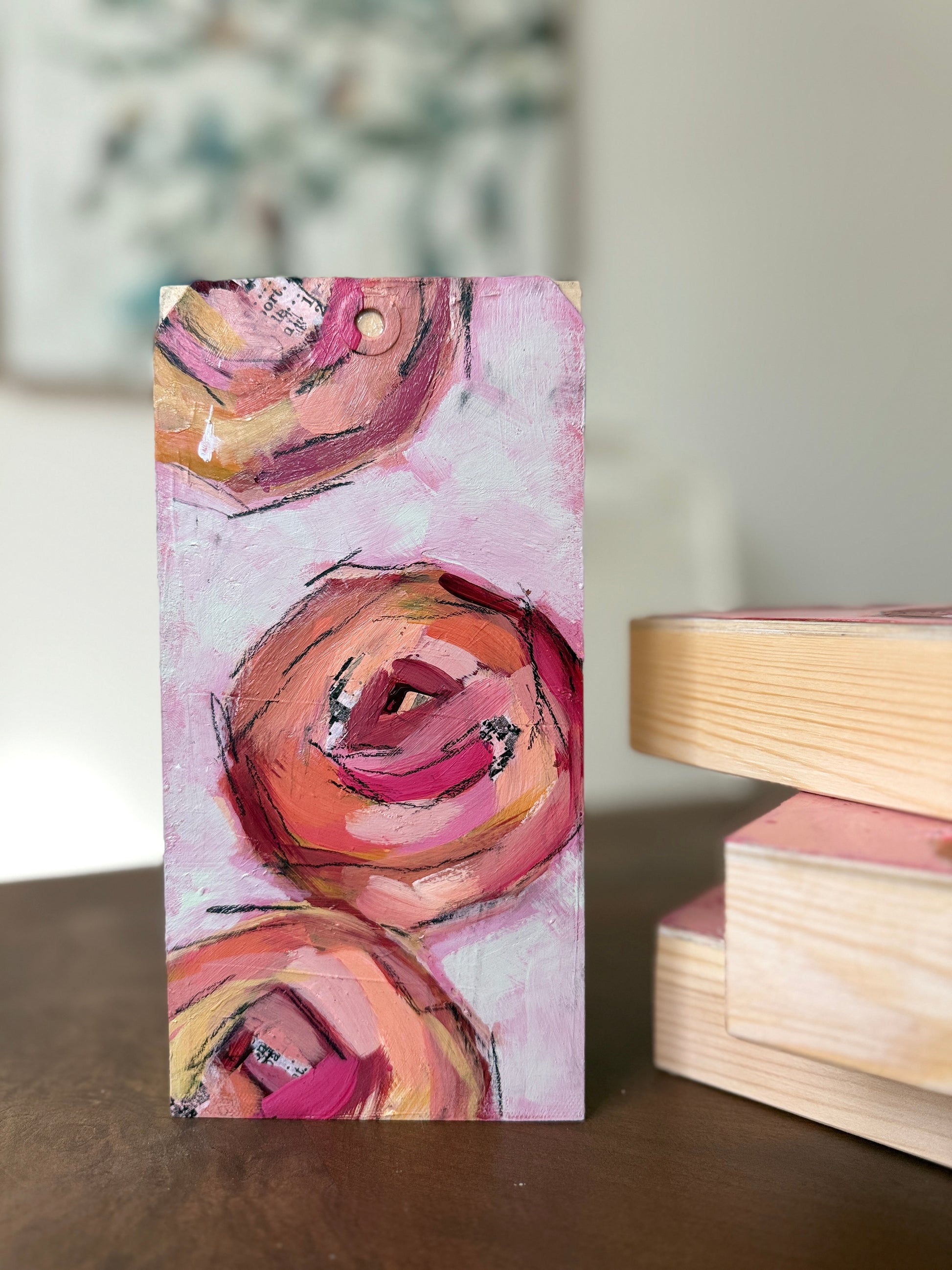 These bold, expressive mini paintings on wood are full of texture, movement, and vibrant color. Perfect for adding a pop of joy to any space.